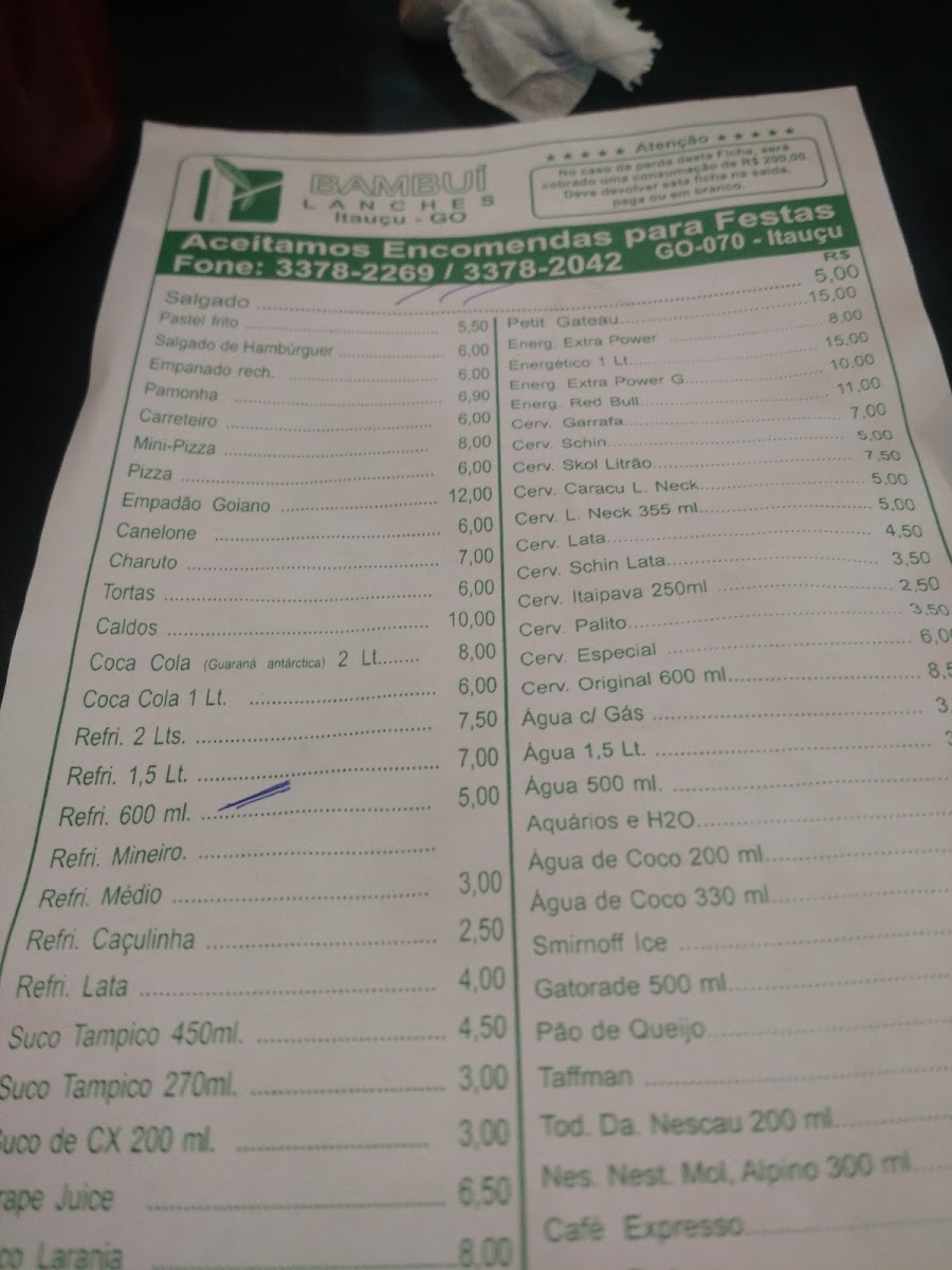 Lanchonete Bambuí Menu